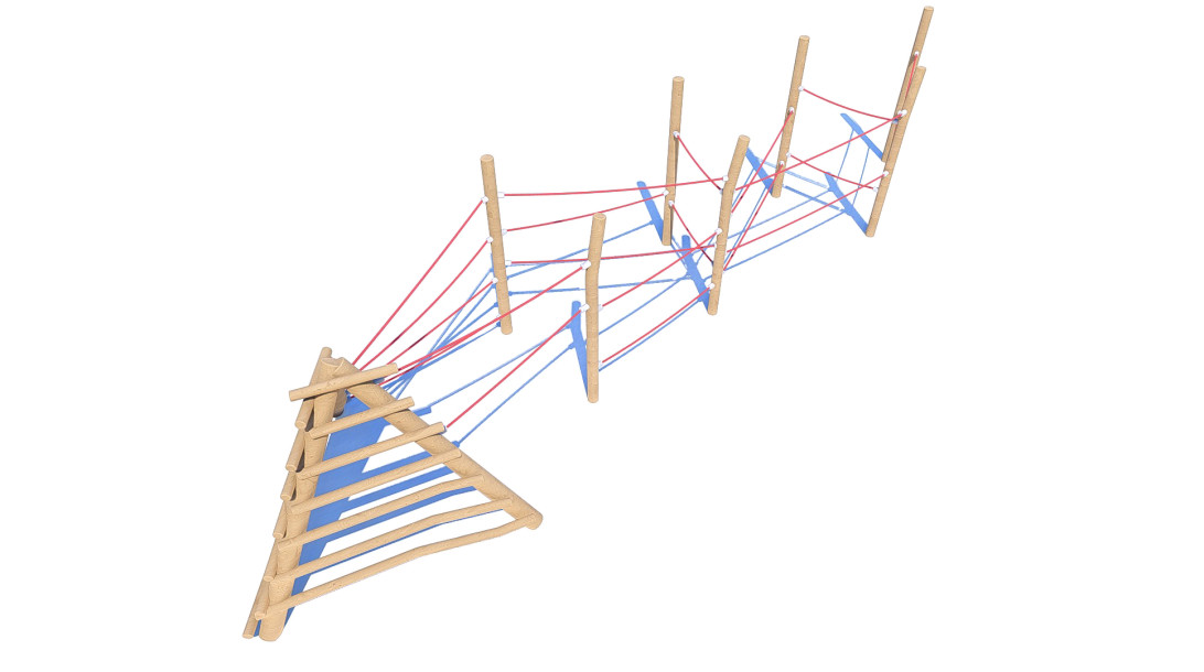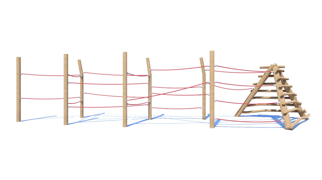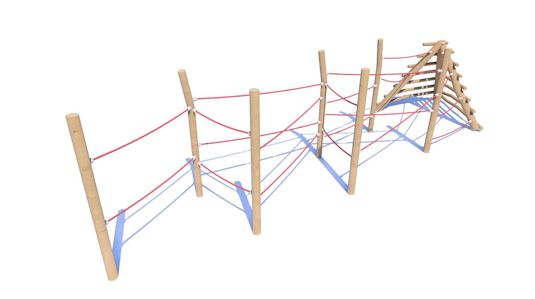 Strong ropes resistant to rubbing can withstand heavy loads and help to develop physical abilities, motor skills and grip strength, and a wooden tower at the end of the journey will be the reward for the journey!