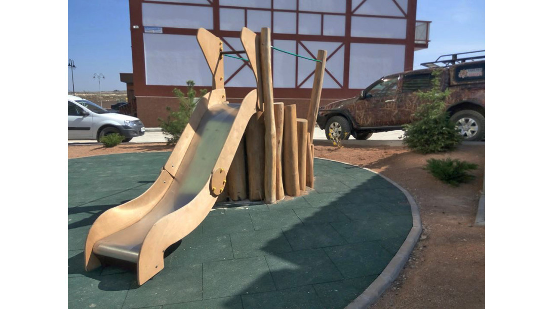 The ecological element of the playground is mostly made of acacia wood, so it lasts longer and has an aesthetic appearance. It trains the vestibular apparatus and simply gives joy.