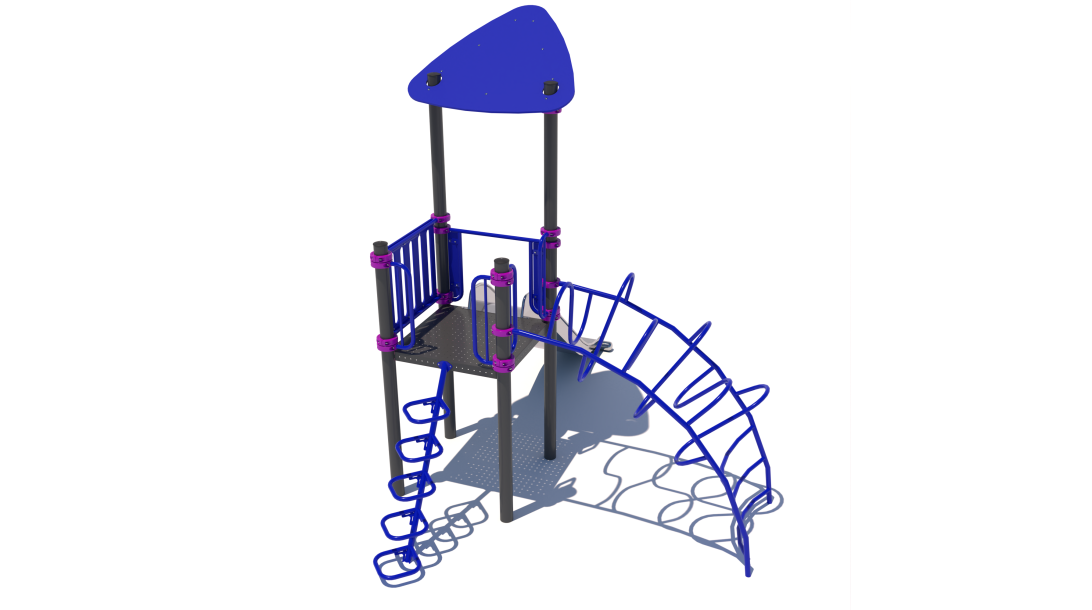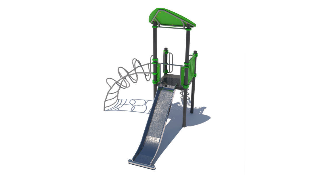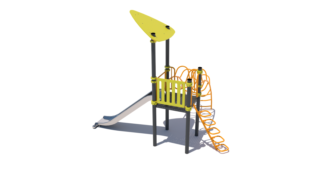 The children's playground consists of a tower, a ladder and a slide. The highlight of the complex is an original liana for training coordination. The complex is equipped with platforms made of a special material - plastisol. Plastisol is an excellent industrial coating for play equipment with an anti-slip effect. Active pastime guarantees the kids' muscle training, endurance development, improvement of dexterity and good health.