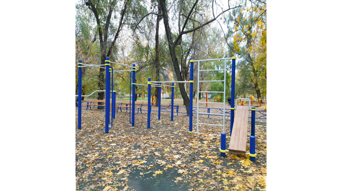 Children can easily use specially equipped equipment. The complex is suitable for warming-up all muscle groups. It is designed not only for beginners, but also for experienced users. On the sports gear you can train push-ups, which will develop the shoulder girdle.